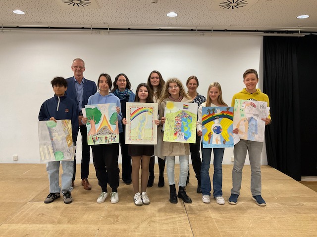 In diesem Jahr steht der Lions-Friedensplakatwettbewerb unter dem Motto „Miteinander.Einig“. „Die Schülerinnen und Schüler sollen ihre Vorstellungen und Ideen davon umsetzen, was passieren kann, wenn man gemeinsamen am friedlichen Zusammenleben der Menschen arbeitet“, erläutert Groffmann die diesjährige Wettbewerbsidee. Teilgenommen haben 75 Schülerinnen und Schüler der 7. Klassen des HEG. Weltweit beteiligen sich jedes Jahr rund 600.000 Kinder und Jugendliche im Alter von 11-13 Jahren aus über 70 Ländern mit ihren kunstvoll gestalteten Plakate.